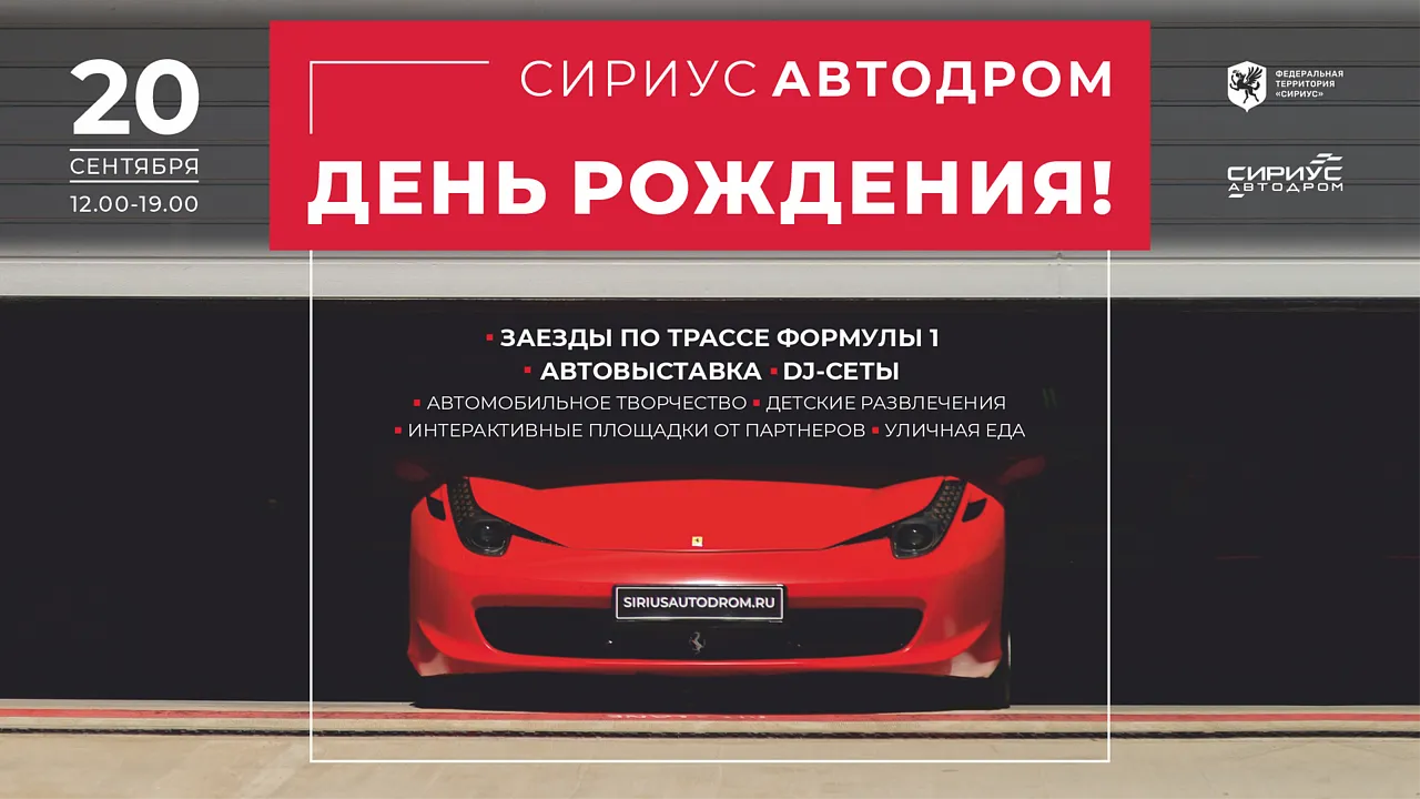 Компания «Железная мебель» поздравляет «Сириус Автодром» с этим событием и приглашает всех присоединиться к празднику. В субботу гостей ждёт насыщенная программа: выставка автомобилей, драйвовая музыка, прогулки по легендарному треку, заезды и множество других сюрпризов!